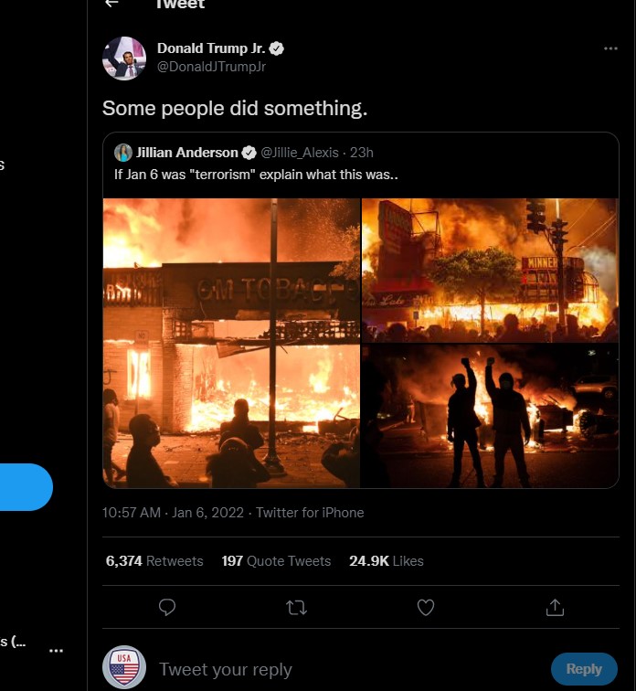 I want to make my views very well known on the issue to try and get people to see my point of view on the subject. There is a difference with that case your presented in your tweet. The case did not include the President of the United States promoting violence. Our nation’s capital was a far worse attack than the image you provided.