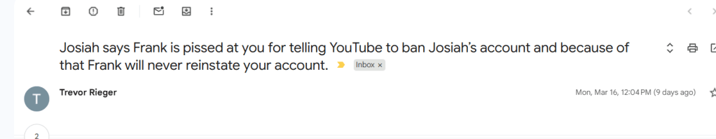 I willl not post on a public forum, but lying to Frank is BS when I am not allowed to speak to Frank or defend my innocence. I showed my obituary on YouTube, and this is a very one-sided conversation.